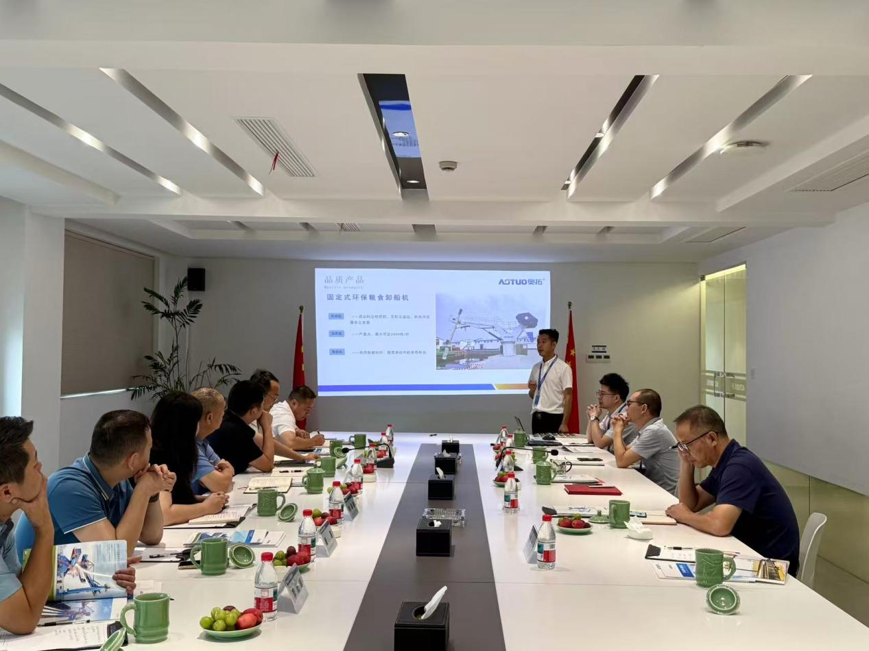Değişim toplantısında, Genel Müdür Yardımcısı Yang Libin ilk olarak Guizhou Limanı ve Denizcilik Grubunun temel durumunu ve grubun "Guizhou'nun su taşımacılığını güçlendirme ve Guizhou ekonomisine hizmet etme" misyonunu anlattı. Guizhou'nun su taşımacılığının "Yangtze Nehri'ne doğru kuzeye gitmesi" hedefine ulaşmak için bu heyet, ileri teknoloji ekipmanlarını ve yönetim deneyimini anlamak ve Guizhou'nun su taşımacılığının kapsamlı gelişimine ve eyalet ekonomisinin ve toplumunun yüksek kaliteli gelişimine olumlu katkılarda bulunmak için AOTUO da dahil olmak üzere ilgili birimlerin ve limanların derinliklerine indi.